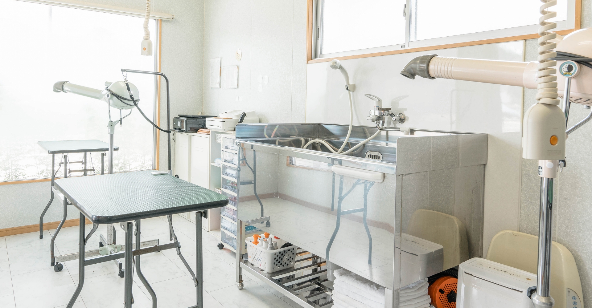 大型犬の診察台への乗り降りが楽にできるように低床になる診察台を完備しております。