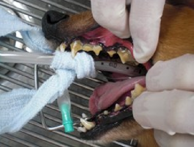 人の歯医者さんでやっている方法と同じです。歯の動揺度の検査をし、必要に応じてレントゲン検査を行います。